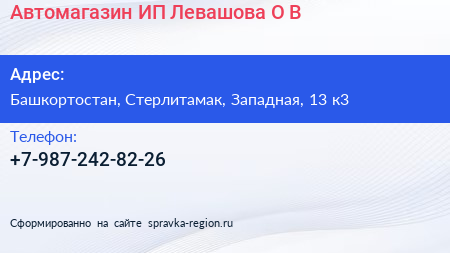 Автомагазин, ИП Левашова О.В. по адресу Башкортостан, Стерлитамак, Западная, 13 к3 в дальнейшем Организация, размещена в следующих категориях: