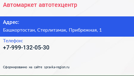 Автомаркет, автотехцентр по адресу Башкортостан, Стерлитамак, Прибрежная, 1 в дальнейшем Организация, размещена в следующих категориях: