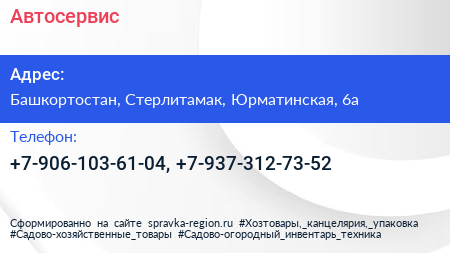 Автосервис по адресу Башкортостан, Стерлитамак, Юрматинская, 6а в дальнейшем Организация, размещена в следующих категориях: