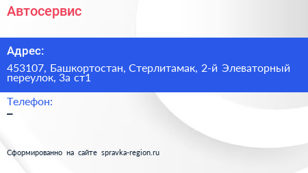 Автосервис по адресу 453107, Башкортостан, Стерлитамак, 2-й Элеваторный переулок, 3а ст1 в дальнейшем Организация, размещена в следующих категориях: