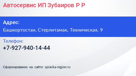 Автосервис, ИП Зубаиров Р.Р. по адресу Башкортостан, Стерлитамак, Техническая, 9 в дальнейшем Организация, размещена в следующих категориях: