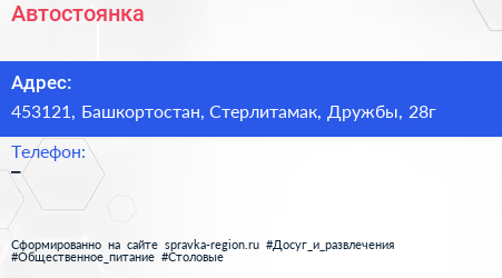 Автостоянка по адресу 453121, Башкортостан, Стерлитамак, Дружбы, 28г в дальнейшем Организация, размещена в следующих категориях: