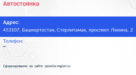 Адрес: Башкортостан, Стерлитамак, Западная, 1Б