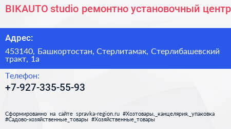 BIKAUTO studio, ремонтно-установочный центр по адресу 453140, Башкортостан, Стерлитамак, Стерлибашевский тракт, 1а в дальнейшем Организация, размещена в следующих категориях: