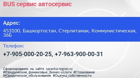 BUS сервис, автосервис по адресу 453100, Башкортостан, Стерлитамак, Коммунистическая, 36Б в дальнейшем Организация, размещена в следующих категориях: