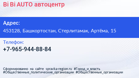 Bi Bi-AUTO, автоцентр по адресу 453128, Башкортостан, Стерлитамак, Артёма, 15 в дальнейшем Организация, размещена в следующих категориях: