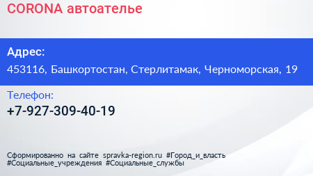 CORONA, автоателье по адресу 453116, Башкортостан, Стерлитамак, Черноморская, 19 в дальнейшем Организация, размещена в следующих категориях: