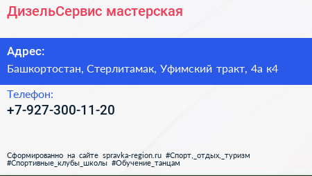 ДизельСервис, мастерская по адресу Башкортостан, Стерлитамак, Уфимский тракт, 4а к4 в дальнейшем Организация, размещена в следующих категориях: