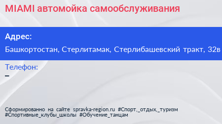 MIAMI, автомойка самообслуживания по адресу Башкортостан, Стерлитамак, Стерлибашевский тракт, 32в в дальнейшем Организация, размещена в следующих категориях:
