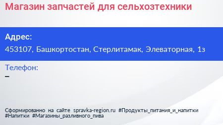 Магазин запчастей для сельхозтехники по адресу 453107, Башкортостан, Стерлитамак, Элеваторная, 1з в дальнейшем Организация, размещена в следующих категориях: