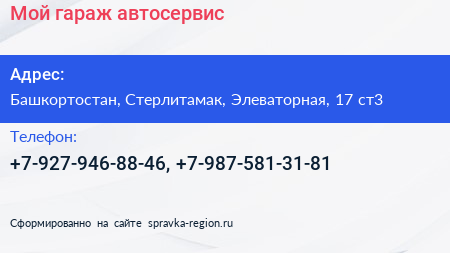 Мой гараж, автосервис по адресу Башкортостан, Стерлитамак, Элеваторная, 17 ст3 в дальнейшем Организация, размещена в следующих категориях: