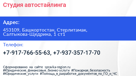 Студия автостайлинга по адресу 453109, Башкортостан, Стерлитамак, Салтыкова-Щедрина, 1 ст1 в дальнейшем Организация, размещена в следующих категориях: