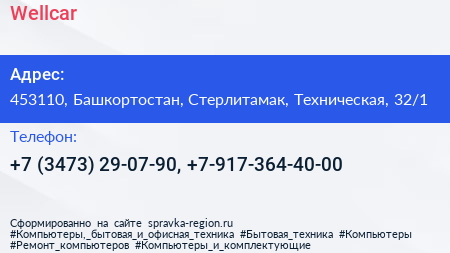 Wellcar по адресу 453110, Башкортостан, Стерлитамак, Техническая, 32/1 в дальнейшем Организация, размещена в следующих категориях: