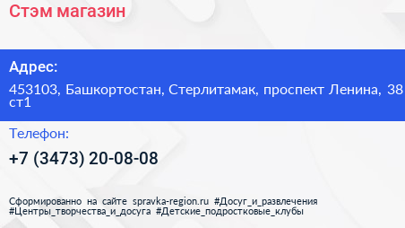 Стэм, магазин по адресу 453103, Башкортостан, Стерлитамак, проспект Ленина, 38 ст1 в дальнейшем Организация, размещена в следующих категориях: