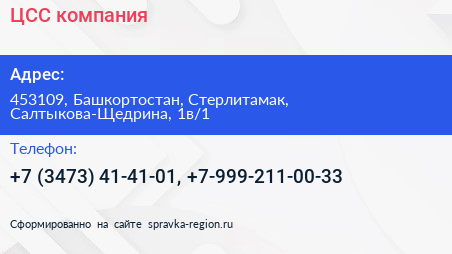 Для связи с организацией воспользуйтесь номером телефона: +7 (3473) 41-41-01, +7-999-211-00-33. Ежедневно с 08:30 до 17:30, вы можете обратиться в эту организацию.