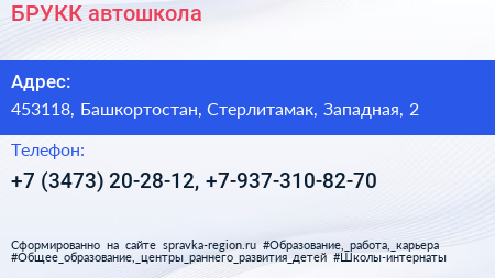БРУКК, автошкола по адресу 453118, Башкортостан, Стерлитамак, Западная, 2 в дальнейшем Организация, размещена в следующих категориях: