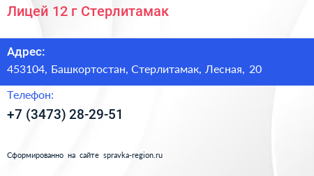 Лицей №12, г. Стерлитамак по адресу 453104, Башкортостан, Стерлитамак, Лесная, 20 в дальнейшем Организация, размещена в следующих категориях: