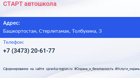 СТАРТ, автошкола по адресу Башкортостан, Стерлитамак, Толбухина, 3 в дальнейшем Организация, размещена в следующих категориях: