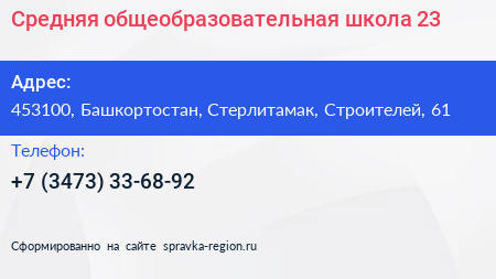 Средняя общеобразовательная школа №23 по адресу 453100, Башкортостан, Стерлитамак, Строителей, 61 в дальнейшем Организация, размещена в следующих категориях: