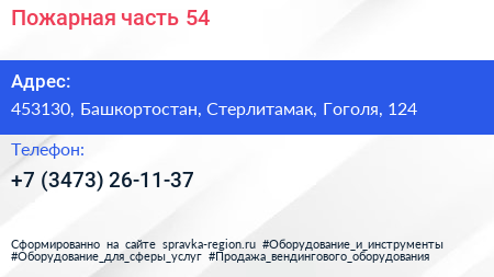Пожарная часть №54 по адресу 453130, Башкортостан, Стерлитамак, Гоголя, 124 в дальнейшем Организация, размещена в следующих категориях: