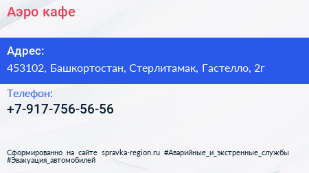 Аэро, кафе по адресу 453102, Башкортостан, Стерлитамак, Гастелло, 2г в дальнейшем Организация, размещена в следующих категориях:
