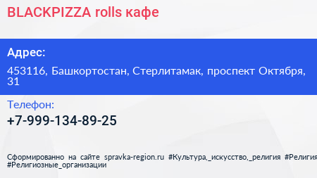 BLACKPIZZA#rolls, кафе по адресу 453116, Башкортостан, Стерлитамак, проспект Октября, 31 в дальнейшем Организация, размещена в следующих категориях: