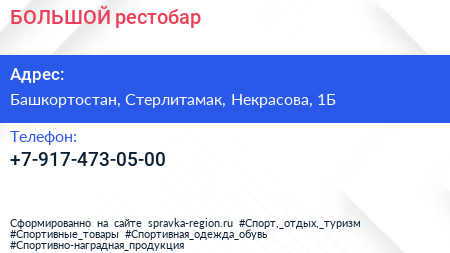 БОЛЬШОЙ, рестобар по адресу Башкортостан, Стерлитамак, Некрасова, 1Б в дальнейшем Организация, размещена в следующих категориях: