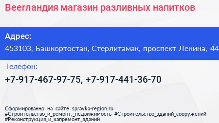 Beerландия, магазин разливных напитков по адресу 453103, Башкортостан, Стерлитамак, проспект Ленина, 44 в дальнейшем Организация, размещена в следующих категориях: