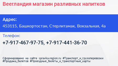 Beerландия, магазин разливных напитков по адресу 453115, Башкортостан, Стерлитамак, Вокзальная, 4а в дальнейшем Организация, размещена в следующих категориях: