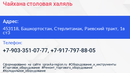 Чайхана, столовая-халяль по адресу 453118, Башкортостан, Стерлитамак, Раевский тракт, 1в ст3 в дальнейшем Организация, размещена в следующих категориях: