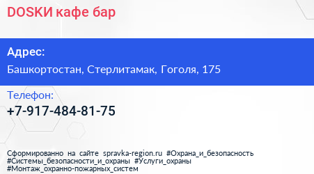 DOSKИ, кафе-бар по адресу Башкортостан, Стерлитамак, Гоголя, 175 в дальнейшем Организация, размещена в следующих категориях: