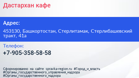 Дастархан, кафе по адресу 453130, Башкортостан, Стерлитамак, Стерлибашевский тракт, 41а в дальнейшем Организация, размещена в следующих категориях: