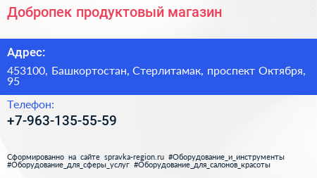 Добропек, продуктовый магазин по адресу 453100, Башкортостан, Стерлитамак, проспект Октября, 95 в дальнейшем Организация, размещена в следующих категориях: