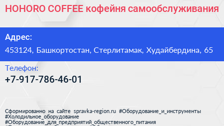 HOHORO COFFEE, кофейня самообслуживания по адресу 453124, Башкортостан, Стерлитамак, Худайбердина, 65 в дальнейшем Организация, размещена в следующих категориях: