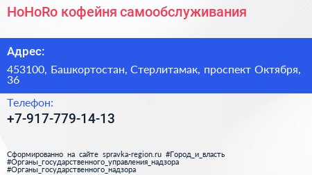 HoHoRo, кофейня самообслуживания по адресу 453100, Башкортостан, Стерлитамак, проспект Октября, 36 в дальнейшем Организация, размещена в следующих категориях: