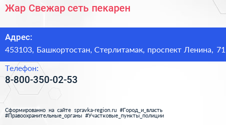 Жар Свежар, сеть пекарен по адресу 453103, Башкортостан, Стерлитамак, проспект Ленина, 71 в дальнейшем Организация, размещена в следующих категориях: