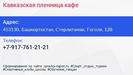 Кавказская пленница, кафе по адресу 453130, Башкортостан, Стерлитамак, Гоголя, 128 в дальнейшем Организация, размещена в следующих категориях: