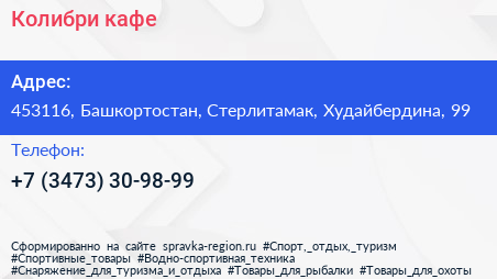 Для связи с организацией воспользуйтесь номером телефона: +7 (3473) 30-98-99. Пн: c 08:00-18:00, Вт: c 08:00-18:00, Ср: c 08:00-18:00, Чт: c 08:00-18:00, Пт: c 08:00-18:00, Сб: c 08:00-18:00, Вс: выходной, вы можете обратиться в эту организацию.