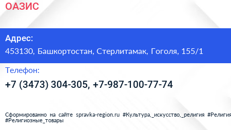 ОАЗИС по адресу 453130, Башкортостан, Стерлитамак, Гоголя, 155/1 в дальнейшем Организация, размещена в следующих категориях: