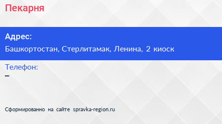 Пекарня по адресу Башкортостан, Стерлитамак, Ленина, 2 киоск в дальнейшем Организация, размещена в следующих категориях: