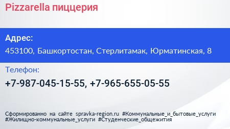 Pizzarella, пиццерия по адресу 453100, Башкортостан, Стерлитамак, Юрматинская, 8 в дальнейшем Организация, размещена в следующих категориях:
