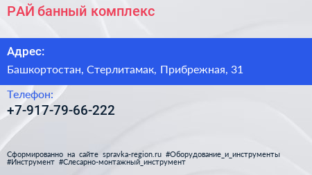 РАЙ, банный комплекс по адресу Башкортостан, Стерлитамак, Прибрежная, 31 в дальнейшем Организация, размещена в следующих категориях:
