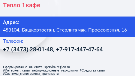 Тепло-1, кафе по адресу 453104, Башкортостан, Стерлитамак, Профсоюзная, 16 в дальнейшем Организация, размещена в следующих категориях:
