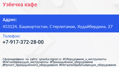Узбечка, кафе по адресу 453124, Башкортостан, Стерлитамак, Худайбердина, 27 в дальнейшем Организация, размещена в следующих категориях: