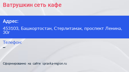 Ватрушкин, сеть кафе по адресу 453103, Башкортостан, Стерлитамак, проспект Ленина, 30г в дальнейшем Организация, размещена в следующих категориях: