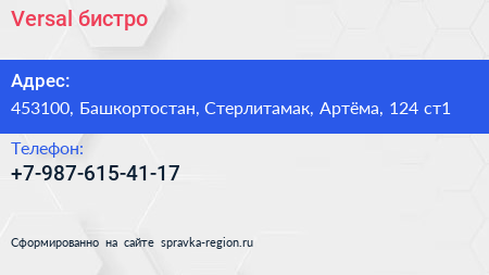 Versal, бистро по адресу 453100, Башкортостан, Стерлитамак, Артёма, 124 ст1 в дальнейшем Организация, размещена в следующих категориях: