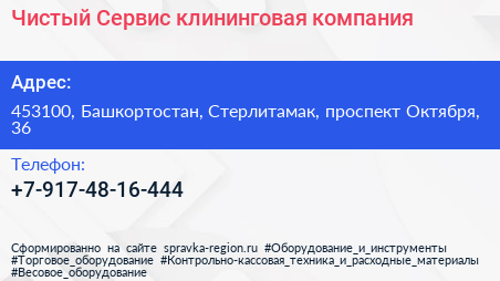 Чистый Сервис, клининговая компания по адресу 453100, Башкортостан, Стерлитамак, проспект Октября, 36 в дальнейшем Организация, размещена в следующих категориях: