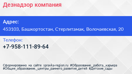 Дезнадзор, компания по адресу 453103, Башкортостан, Стерлитамак, Волочаевская, 20 в дальнейшем Организация, размещена в следующих категориях: