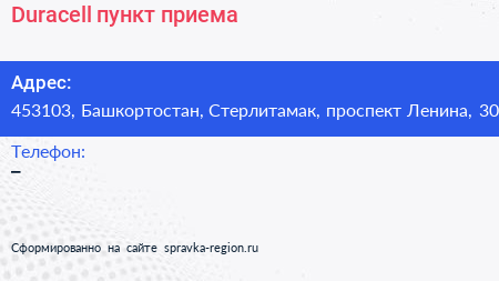 Duracell, пункт приема по адресу 453103, Башкортостан, Стерлитамак, проспект Ленина, 30 в дальнейшем Организация, размещена в следующих категориях: