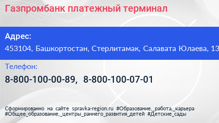 Газпромбанк, платежный терминал по адресу 453104, Башкортостан, Стерлитамак, Салавата Юлаева, 13 в дальнейшем Организация, размещена в следующих категориях: